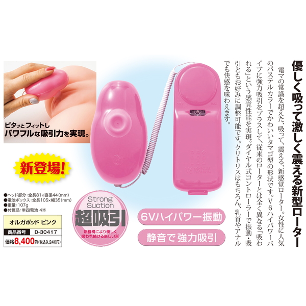 電マの常識を超えた、吸って、震える、新感覚ローター。女性に人気のパステルカラーでかわいいタマゴ型の形状です。V6ハイパワーバイブに強力吸引をプラスして、従来のローターとは全く異なる「吸われる」という感覚性能を実現。ダイヤル式コントローラーで振動・吸引ともお好みに調整可能です。クリトリスはもちろん、乳首やアナルでも快感を味わえます。