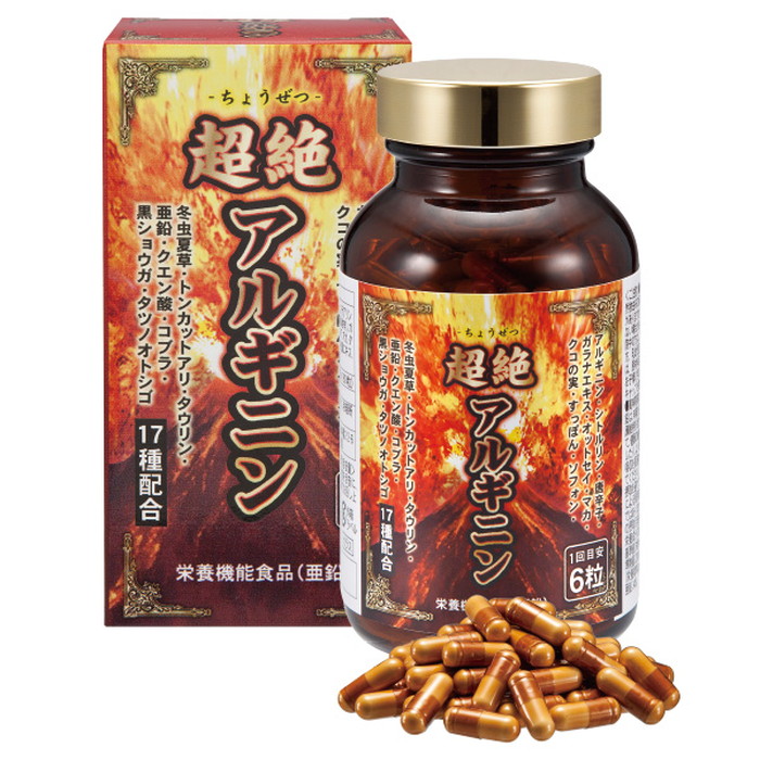 『超絶アルギニン』は男性力増強成分L-アルギニンを1800mgと高濃度配合。L-シトルリンは体内に入るとL-アルギニンを量産。猛烈なパワーで海綿体にめぐりがドッと流入。下半身に勢いが甦ることでビンビンに漲ります。男性自身を強化するマカ、すっぽん、冬虫夏草など世界の活力素材17種を配合。男の自信を高めたい方のためのサプリです。