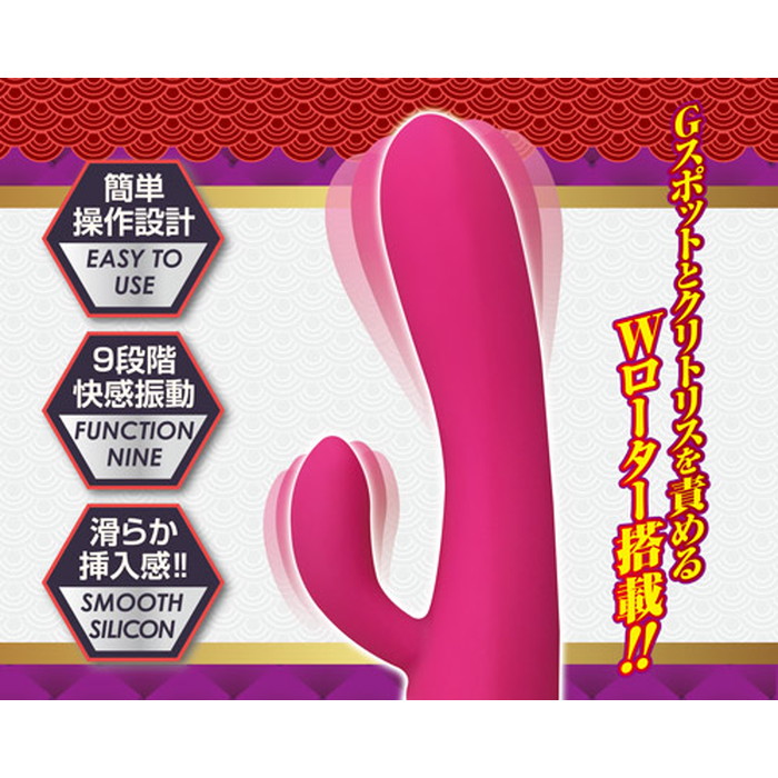 挿入部の先端と子機にローターを搭載し、Gスポットとクリトリスを同時責め。9段階の振動パターンが刺激に彩りを与えます。