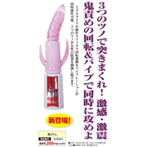 上下スライドの操作スイッチで回転運動&バイブレーションが同時操作可能。3つのツノが女性の陰部を刺激し続けます。